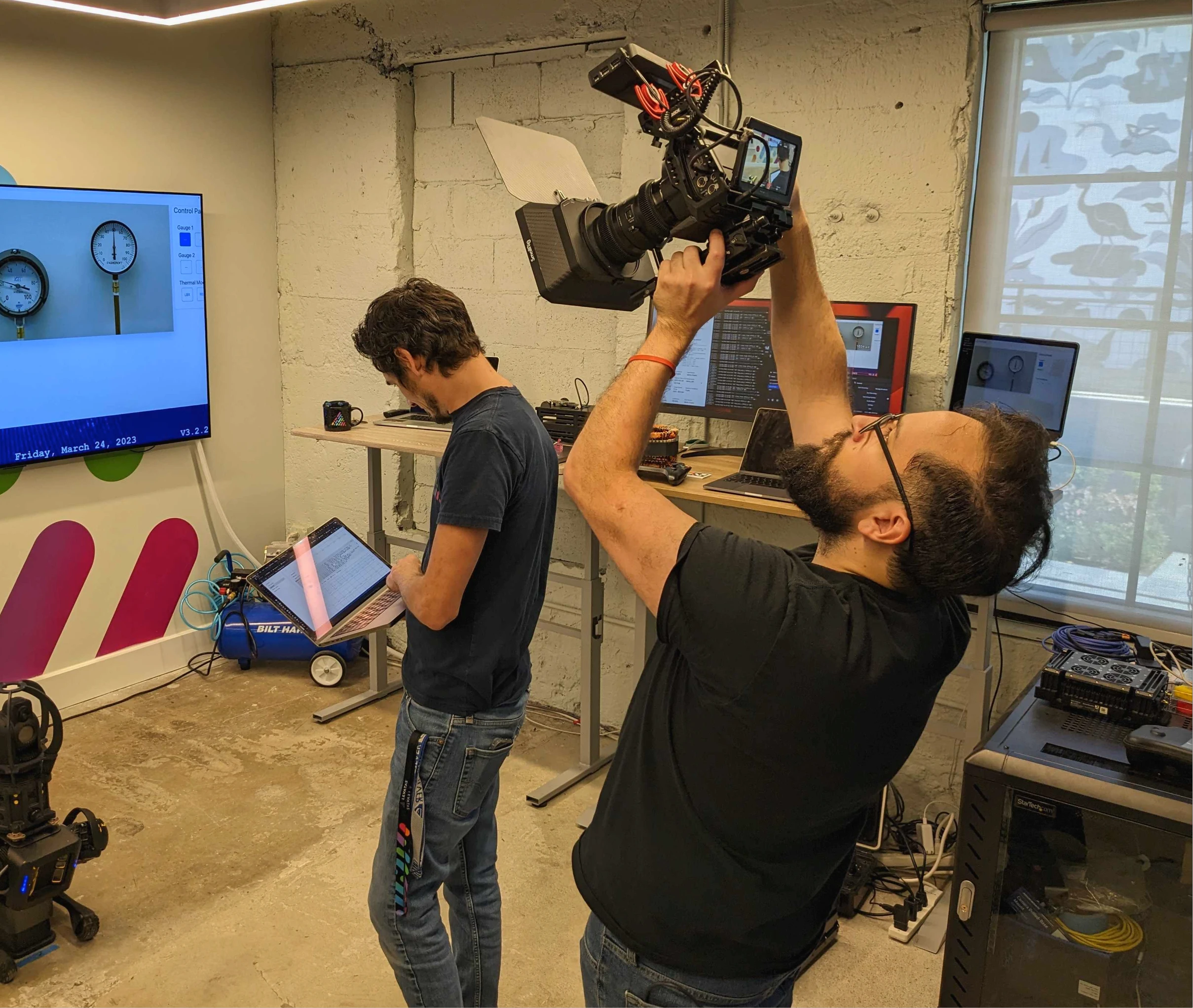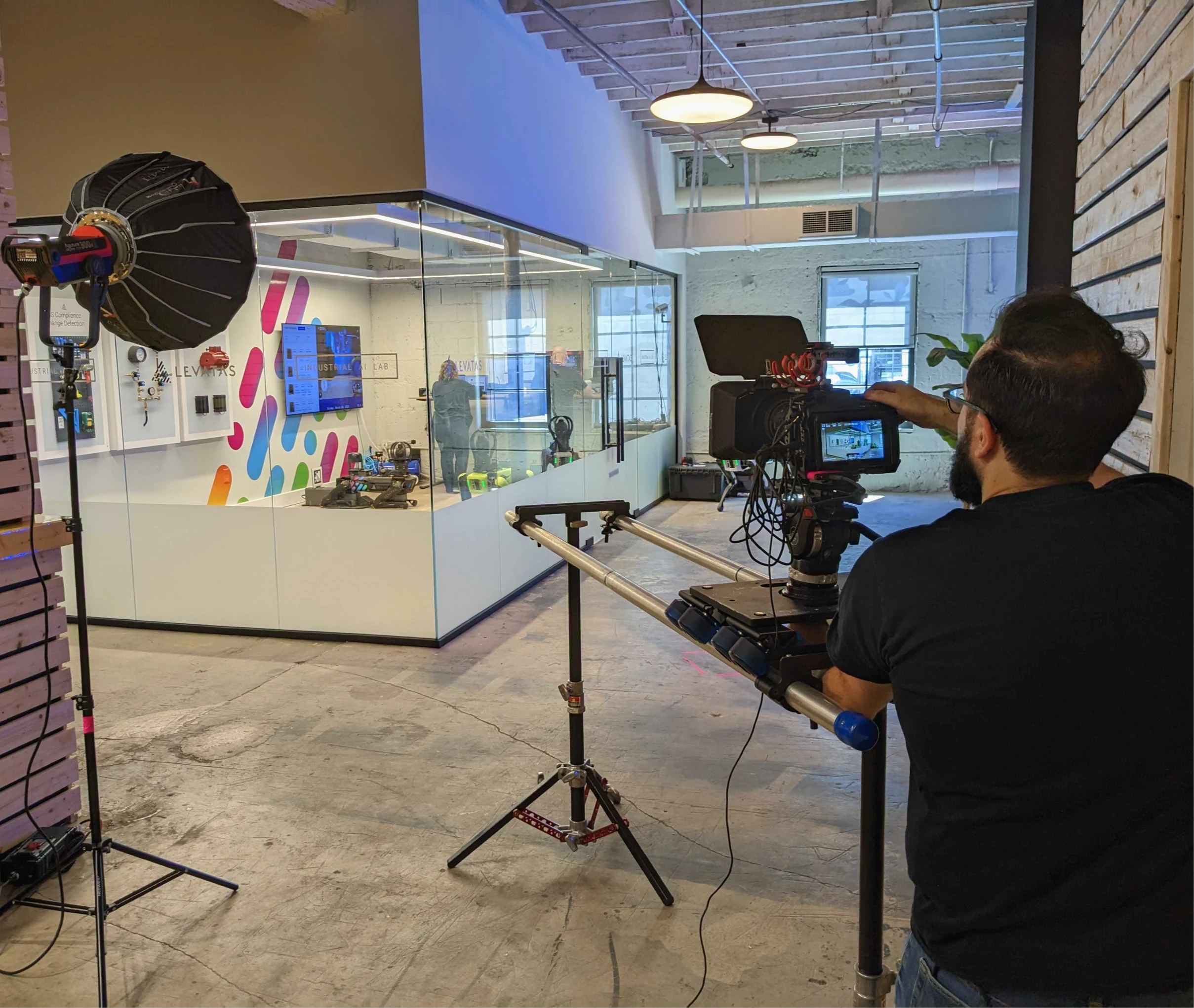 BTS from a shoot in March 2023 for the opening of the Levatas Industrial AI Demo Lab, a space where clients could test AI models.